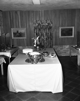 A New Year's Eve party table arranged by Mrs.. Robert F. Windfohr took a blue ribbon at the Garden Club of the Junior League, held in the home of Mrs.. Ernest Closuit. Published in Fort Worth Star-Telegram evening edition December 14, 1950.