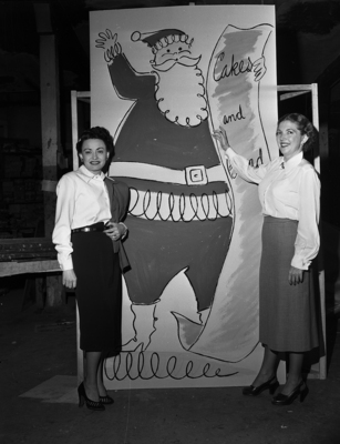 Mrs.. Edwin Jackson, left, and Mrs.. Richard C. Newkirks, were among committee chairmen of the Fort Worth Garden Club kept busy finishing preparations for the annual Christmas bazar in Westower Town Hall. The bazar will be open to the public without charge. Published in Fort Worth Star-Telegram morning edition December 15, 1950.