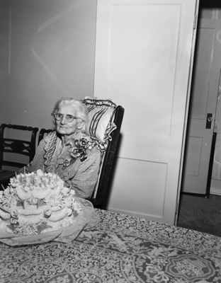 Mrs.. Ida Tilton shown celebrating her 90th birthday. Published in Fort Worth Star-Telegram morning edition December 18, 1950.