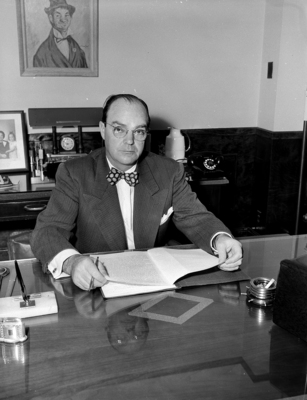 Here it is shown Berl E. Godfrey seating at a desk. He was the president of the Fort Worth Chamber of Commerce. Published in Fort Worth Star-Telegram evening edition, December 20, 1950.