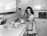 Image of Martha Sue Humphreys, who is helping her mother wash dishes, is the daughter of Mrs. Mary Margaret Humphreys. Published in Fort Worth Star-Telegram morning edition December 31, 1950.