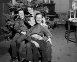Edward F. Comley is shown with his three children- Leroy, front, Edward Jr., and Florette- with whom he was reunited for the first time in 8 years. The children had been at Lena Pope Home while their father was suffering from amnesia. Published in Fort Worth Star-Telegram morning edition, December 22, 1950.