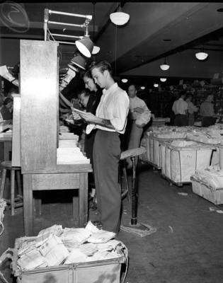 Handley's Joe Ditmore, who planned to enter Golden Gloves again, checks letters. Published in Fort Worth Star-Telegram evening edition, December 23, 1950.