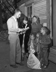 Goodfellows keep their pledge with the less fortunate as Clifford Recer delivers sacks of Christmas cheer. He is an employee of Texas Electric Service Company and is typical of the scores of volunteers who helped deliver the Goodfellow packages. Published in Fort Worth Star-Telegram morning edition December 24, 1950