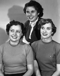 Home for the Christmas holidays from Southern Methodist University (SMU) are left, Miss June Clark, right, Miss Beverly Hill, and Miss Diane Broiles. Published in Fort Worth Star-Telegram morning edition December 25, 1950.