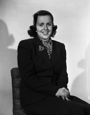 Image of Miss Anne Knode of Calgary, Alberta, Canada. She is here for a week to spend Christmas with her parents, Mr. and Mrs. W. F. Knode, 2417 Colonial Parkway. She is a geologist for an oil company in Canada. Published in Fort Worth Star-Telegram morning edition December 29, 1950.
