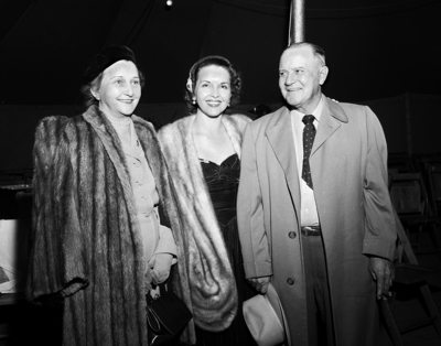 Margaret Phelan, center, poses with her parents, Mr. and Mrs. Art Phelan of 3417 Denton Highway, at the Star-Telegram community Christmas tree. Phelan is well known in baseball circles as former club owner, manager and Chicago Cub and Cincinnati Red infielder. Published in Fort Worth Star-Telegram morning edition December 25, 1950.