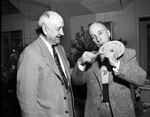 Series not published on "Christmas Day" at the Amon Carter home. Amon Carter is watching a unidentified man play an instrument.