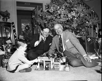 Series not published on "Christmas Day" at the Amon Carter home. Another picture of Amon Carter and the man. They are playing with they boy and his new toy.