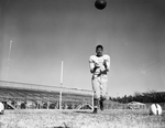 Pictured here is Kermit Cummings, seen posed to catch a thrown football. He is a student at Wichita Falls High.