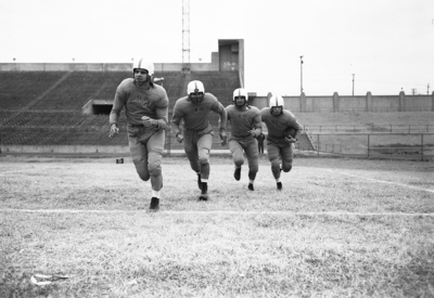 Here are the offensive backs who will play for Tennessee against Texas in the Cotton Bowl. Left to right are Bert Rechichar, Andy Kozar, Hank Lauricella, and Jim Hahn.