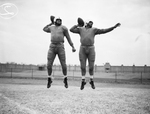 Harold Payne, left, and Hank Lauricella seen here practicing their throws in posed action.