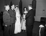 Major General Roger M. Ramey and the former Latane Worsham are shown during their wedding ceremony at Shelbyville. Left to right are Brigadier General William J. Clinch, General Ramey, the bride, Miss Emma E. Brown and Reverend J. Carroll Chadwick. Published in Fort Worth Star-Telegram morning edition December 28, 1950.