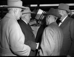 Group of Tennesseans arriving here for Cotton Bowl Game. Left to right: Governor Gordon Browning of Tennessee, Mayor Edgar Deen, Publisher Silliamn Evans of Nashville, Mayor Thomas L. Cummings of Nashville, Amon Carter and Chancellor Harvie Branscomb of Vanderbilt University. Four shots of group.