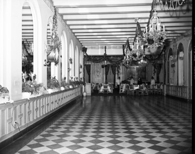 Series(not published) of New Year's Eve party attended by Mr. and Mrs. Amon Carter. This shot is what is behind the camera last shot. Seen is tables for the guests and the butlers preparing for the event.