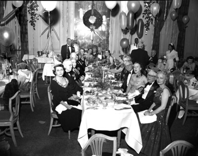 Series(not published) of New Year's Eve party attended by Mr. and Mrs. Amon Carter. The party guests have arrived for the event. Identifiable is Mr. and Mrs. Amon Carter.