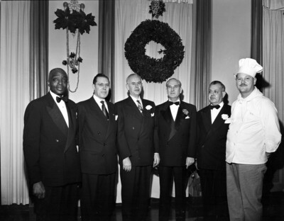 Series(not published) of New Year's Eve party attended by Mr. and Mrs. Amon Carter. Shown is a group of men in tuxedos and the head chef.