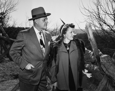 Seven chartered buses took 265 Tennessee football fans to Seybold Guest Ranch west of Mineral Wells for a day's outing and a steak dinner. Shown here is Dr. and Mrs. Fred R. Haselton of Nashville view the winding Brazos River from atop a 100-foot bluff. The visitors arrived by special train, celebrated the New Year at a Hotel Texas dance and well see the Cotton Bowl. Published in Fort Worth Star-Telegram morning edition January 1, 1951.