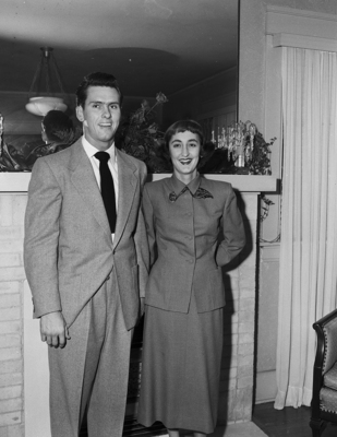 Miss Peggy Jean and Mr. Ben Tompkins were married at the home of her grandparents, Mr. and Mrs. J. H. Bullock, 2729 Carter. They returned to Austin to resume their studies at the University of Texas, where Mrs. Tompkins, a cheerleader. Mr. Thompkins, the quarterback of the UT football team, played in the Tennessee-UT game on New Year's Day. Published in Fort Worth Star-Telegram morning edition January 3, 1951.