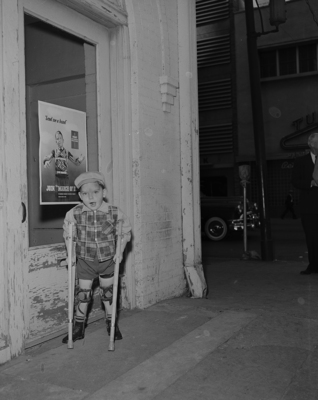 Image of three-year-old Dennis Crowell, son of Mr. and Mrs. Hoyt Crowell, 814 Saint Louis Avenue, has been chosen Tarrant County's poster boy for the 1951 March of Dimes campaign. Dennis was diagnosed with polio when he was 10 months old.
