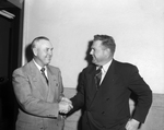 Jack McCullough, left, named as Tarrant County agricultural agent by Commissioners Court, shakes hands with W. A. Ruhmann, whom he replaces. McCullough comes here from Collin County. Published in Fort Worth Star-Telegram evening edition January 11, 1951.