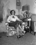 Pictured here is Mrs. Francis M. Homles seated at her home after having taken a trip to Lake Charles, Louisiana.