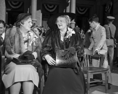 Seated at the inauguration ceremony of Governor Allan Shivers of Port Arthur, mother of the governor, left, and Mrs. John H. Shary of Sharyland, mother of the governor's wife. Published in Fort Worth Star-Telegram morning edition January 17, 1951.