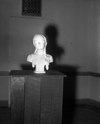 Pictured here is a sculpture bust of Jean Schupbach featured in the one-man exhibit of works by Electra Waggoner Biggs.