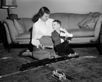 Mrs. Jean Andreae with her son, Robert, 3 years old. She was hospitalized for 22 days due to a polio diagnosis. Published in Fort Worth Star-Telegram evening edition January 22, 1951.