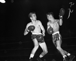 Gerald Bullard, right, open class bantam, readies a left for Horace Hooper after having absorbed a punch in their semifinals bout. Hooper won. Published in the Fort Worth Star-Telegram morning edition, January 22, 1951.