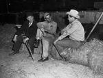 As exhibitors and their employees bedded down animals in the livestock exhibit buildings for the Southwestern Exposition and Fat Stock Show they broke into groups like this, composed of Raymond Johnson of Sikeston, and Joe Straus of San Antonio.