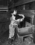 Small fry were among early arrivals for the 1951 Southwestern Exposition and Fat Stock Show. Mott Russom, 4, daughter of Mr. and Mrs. C. K. S. Russom of Fort Worth gives a warm welcome to a 3-day-old black Suffolk lamb owned by A. C. Stewart of Abbotsford, British Columbia, Canada. The lamb was born in Denver.