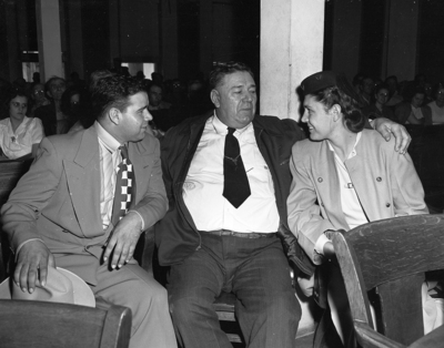 Former Deputy Sheriff Sam Smithwick, center, is consoled in Belton Courtroom by his son, Robert, 18, and daughter, Mary Rogers. Smithwick is charged with murdering W. H. (Bill) Mason, Alice radio commentator.