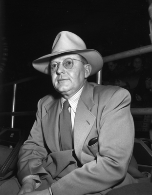 Image shows E. N. (Pink) Boylen who is a commissioner the International Rodeo Association and arena director of the Pendleton Roundup. It is his first visit to the Fort Worth show.