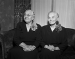 Image shows Mrs. P. Mittenthal, left, from Atlantic City, New Jersey and Mrs. Sam Marks, 82, of Waco. They are shown seated on couch celebrating 65 years of friendship. They visited in the home of Mrs. Mark's daughters, Mrs. A. Gilbert, 2556 Wabash and Mrs. Harry Teter, 3417 Park Ridge. Dr. Mrs. Mittenthal celebrated her 86th birthday in Fort Worth with her daughter, Miss Ida Mittenthal. Published in the Fort Worth Star-Telegram evening edition, January 31, 1951.
