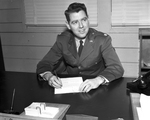 Image shows Major John Boyle of 7th Bomb Wing at Carswell Air Base. He is shown to be seated at a desk writing.