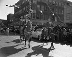 Governor Shivers rides alongside W. R. Watt, right, show president-manager, in the downtown parade.