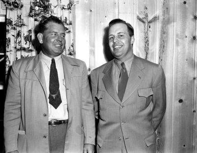 Image shows Gay Copeland of Sonora, left, elected president of the National Cutting Horse Association. Right, is Robert Q. Sutherland, of Kansas City, elected vice president. Published in the Fort Worth Star-Telegram evening edition, January 26, 1951.