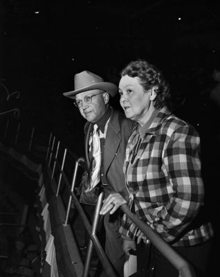Mr. and Mrs. J. L. Discus, members of the Denison Roundup Club, were enthusiastic spectators at the rodeo at the Stock Show. Published in Fort Worth Star-Telegram evening edition January 29, 1951.