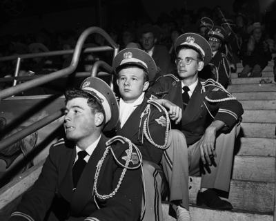 Billy Lively, Harvey Nicholas and Melton Mobley, top to bottom, members of the Grand Prairie High School band, came the Stock Show for Grand Prairie Day and made it a point to see the rodeo. Published in Fort Worth Star-Telegram evening edition January 29, 1951.