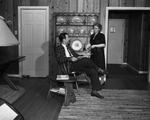 Mr. and Mrs. D. D. Obert, shown with the authentic reproductions of Early American Funiture he has made at their home. Two examples that can be seen are his Welch cabinet and the coffee table in front