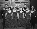 The Amarillo Barn Dancers were top scorers of the Southwestern Exposition and Fat Stock Show square dance contest. Left to right, Mr. and Mrs. Curtis Bell; Virgil and Clara Holloway, brother and sister; Curtis Bell Jr. and Mrs. Willa Croom, brother and sister; Mr. and Mrs. Parish and the caller, C. M. White.