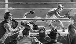 Image shows a copy of a painting of a Golden Gloves boxing match.