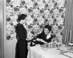 Pictured here serving tea to Mrs. G. M. Garrett is Mrs. Tom Howorth. Mrs. Garrett was honored at a tea in Mrs. Howorth's new home.
