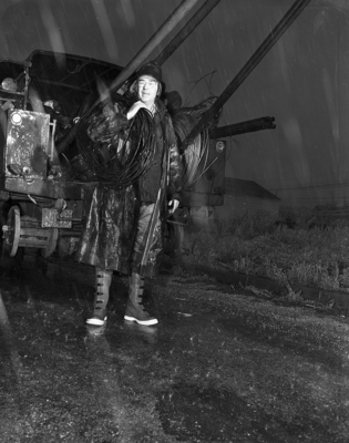 Pictured here is Chester Webb Brown, a 30-year veteran with the Texas Electric Service Company, as a linesman.