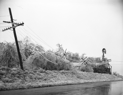 Ice; Blizzards; Telephone poles; Electrical Wires