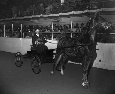 Captain Irish, driven by Bill Larson, won the Fine Harness Stake at the Southwestern Exposition and Fat Stock Show for the Camelia Lane Farm Slidell. Published in Fort Worth Star-Telegram morning edition February 5, 1951.