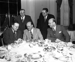 Image shows Reverend James N. Morgan, general chairman, seated left, extended invitations to other evangelical denomination to participate in the Billy Graham crusade. Others from left to right, Reverend Jacob Filbert, left, and Reverend Robert Boshen, standing left, Reverend C. A. Sutton and Reverend James McGraw. Published in the Fort Worth Star-Telegram morning edition, February 4, 1951.