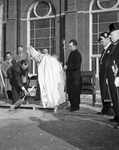 Image shows center, Bishop Joseph P. Lynch, of Dallas, breaking ground with shovel for the new directory at Saint Mary's Church. Assisting him is Robert F. Snakard, master of ceremonies and Reverend Thomas Teschoepe, vice chancellor of the Dallas diocese. Published in the Fort Worth Star-Telegram morning edition, February 5, 1951.