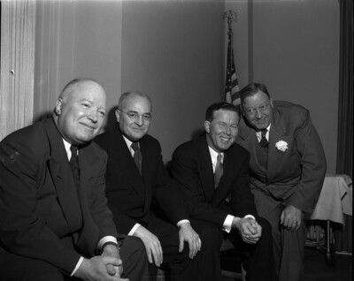 Dinner given at Hotel Texas for Ernest O. Thompson. Left to right, A. L. Soliday, Frank Porter, E. F. Bullard, L. F. McCollum, and Ralph O. Dietler.